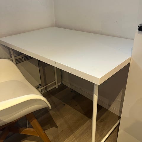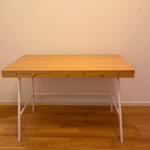 Skrivepult fra IKEA, praktisk størrelse med 1 skuff og 1 åpen hylle under.
