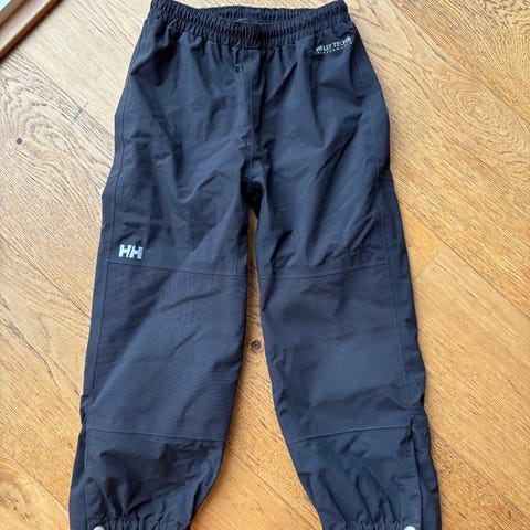 Svart Helly Hansen skallbukse str 110. Godt brukt, men ingen hull eller skader.