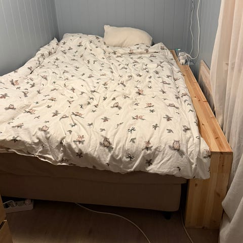 IKEA seng med overmadrass og madrassbeskytter selges. Sengen har en enkel og ren design og er 90 cm bred. Sengen er 5 år gammel. Hodegjerdet kan følge med mot pristillegg.