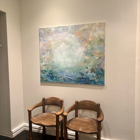 Abstrakt maleri signert i 2016. Mål 70x70cm. Må hentes på Briskeby.
