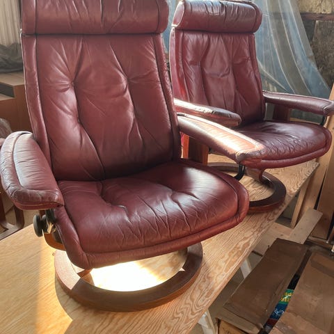 Elegant og komfortabel lenestol fra Hjellegjerde, levert med matchende fotskammel.