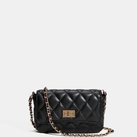 River Island dameveske laget av kunstlær med quiltet mønster og metallogo på fronten. Vesken har en justerbar reim og lukkes med klaff. Egnet for daglig bruk og mindre personlige eiendeler.