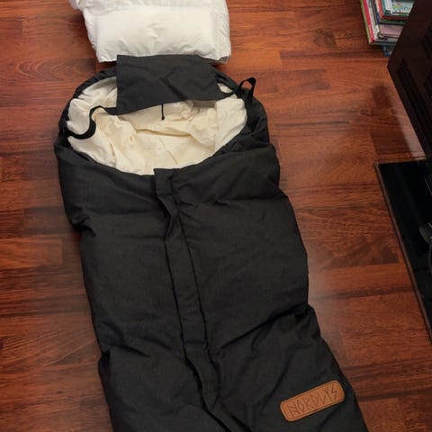 Pent brukt voksipose av eldre modell. God og varm vinterpose. Det medfølger en sommerdyne, slik at den kan brukes også når det er litt varmere.