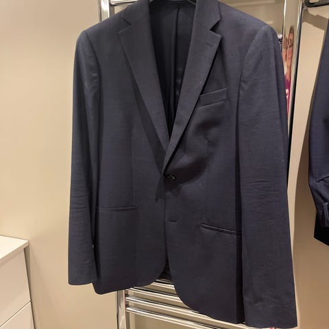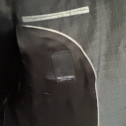 Riccovero dressjakke i blå farge, laget av bomull. Passer herre i størrelse M./L. Jakken har klassisk design med knappelukking og flere lommer. Egnet for formelle og semi-formelle anledninger.