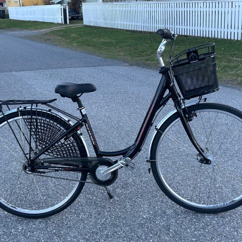 Fin Elisabeth Coffee 8. Denne er i god stand og har gjennomgått service hos oss. Sykkelen har kraftig motor fra Bafang med opptil 80 Nm (ca 60 NM sammenlignet med Bosch. Det er omtrent 40 km rekkevidde med mest hjelp og inntil 70 km med minst hjelp. Sykkelen har hydrauliske skivebremser foran og bak. Det er Shimano Nexus 8 delt girsystem som krever lite vedlikehold.