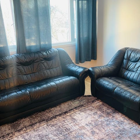 To Seters sofaen er: L-160cm / D-90cm / H-80cm / Setehøyde - 45 cm