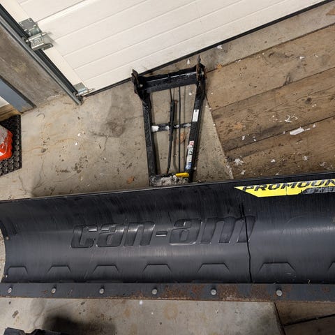 Godt brukt brøyteskjær i merke CanAm. Litt rust å se langs kanten forran men det rydder fremdeles snøen av veien!👍 Så med andre ord, godt brukt, men mye bruk igjen 😁👍De fleste brøyteskjær er i stål og er ganske tunge, Dette er i komposittmateriale og er mye lettere enn andre brøyteskjær!👍Selges som den står, og uten selve feste som festes til atven da denne ble stjålet men det er et hurtigfeste. Så dette må kjøpes utenom. Må hentes på Tromøya i Arendal🙂