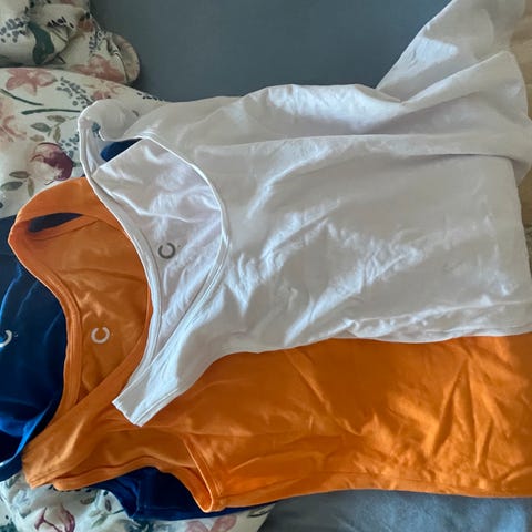 2 supersøte topper fra Cubus selges samlet. Størrelse: large. Farge: svart og hvit. Toppene er av mykt og lett materiale, har knepping øverst (praktisk og fin detalj), og justerbare stropper. Lite brukt, fremstår nye.