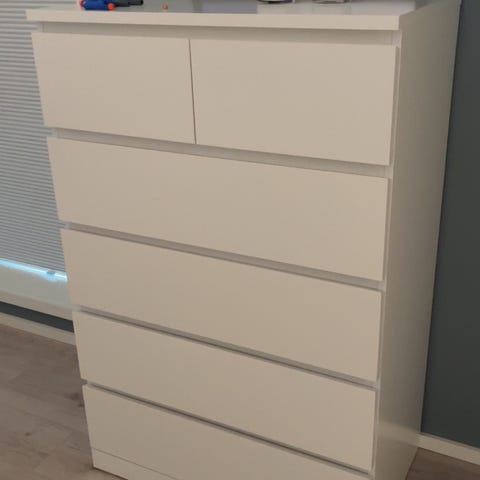 MALM kommode fra IKEA, inkludert glassplate. Mangler en stav og har to lite synlige bruksmerker. Se bilde.
