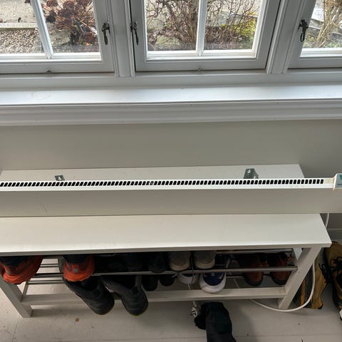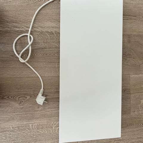 Panelovn i hvit farge med ventilasjonsåpninger. Egnet for oppvarming av rom.