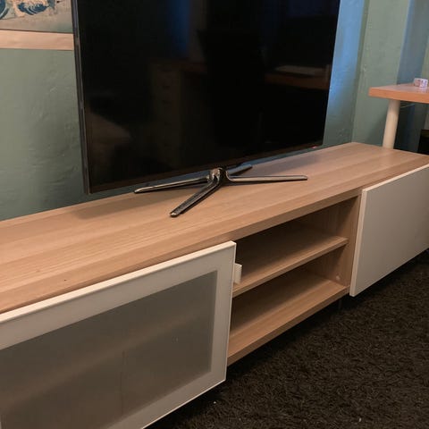 Pent brukt TV-benk selges da vi ikke har plass til den lengre. God langringsplass i skuffene, med hull bak på begge sider til ledninger.