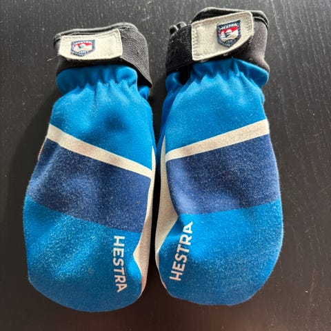 Knapt brukt før de ble for små. Veldig myke, varme og gode langtennsvotter med børstet fleece på innsiden.