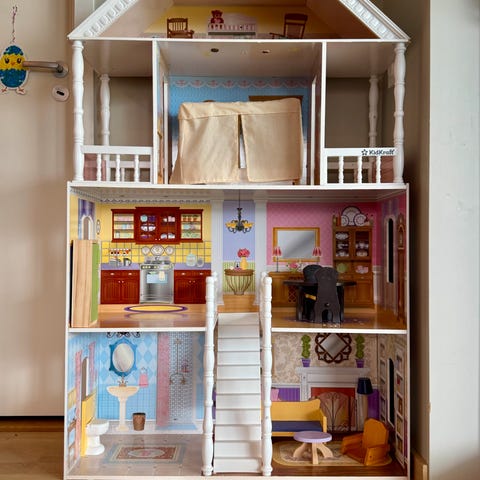 Et veldig fint og stort dukkehus. Gøy for 5 åringer med et hus høyere enn seg selv. Vedlagt er også bilde av huset vi har montert på barnerommet. Den som selges er uåpnet i orginalesken.