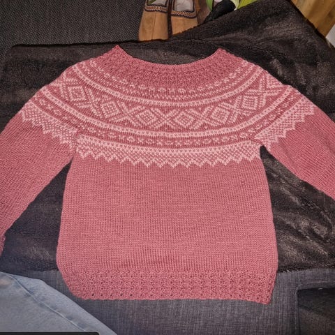 Strikket i Double sunday fra Sandnes garn. 100% merinoull. Garnpris ca 450,- selges 600,- Har en i str 8 år også til 600,-
