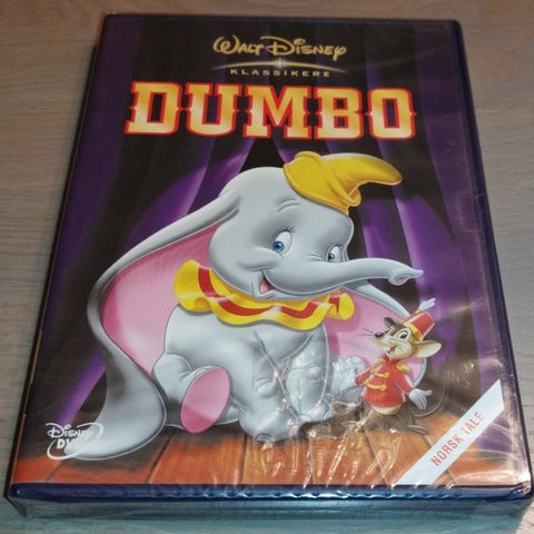 Walt Disney Dumbo Spesialutgave DVD med norsk tekst og tale. Inneholder filmen Dumbo, en animasjonsfilm fra 1941. Disney klassiker nr. 4.
