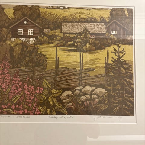 Stort Rolf Nerli «Gammel sjøbod» (1993) signert litografi