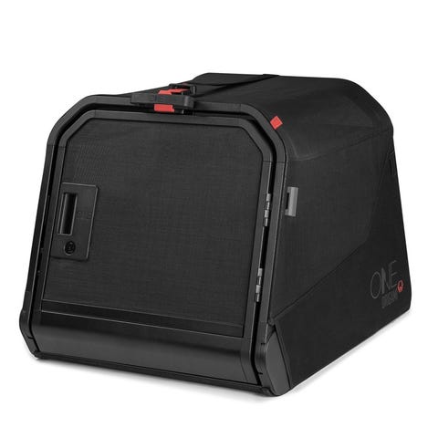 Buret er sammenleggbart og har et tak som kan åpnes helt, i tillegg til dører på siden og i fronten.