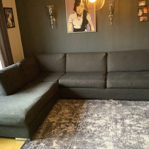 Koksgrå sofa med to sjeselong selges rimelig. Sofaen er 7 år gammel og er i god stand. Fin og behandling å sitte på.