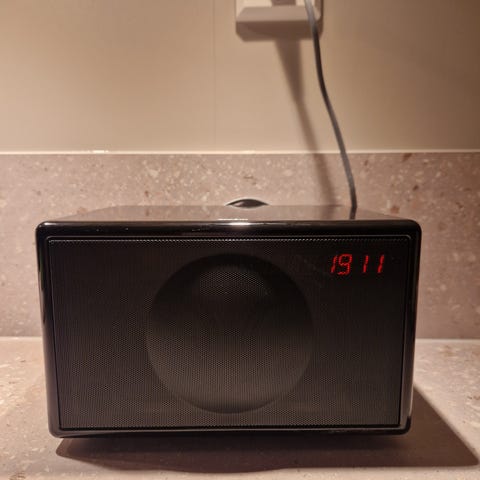 FM radio og mulighet for iPod mode (inngangen er til iphone 4s og eldre, men adapter/overgang finnes). Det er IKKE Bluetooth eller batteri!
