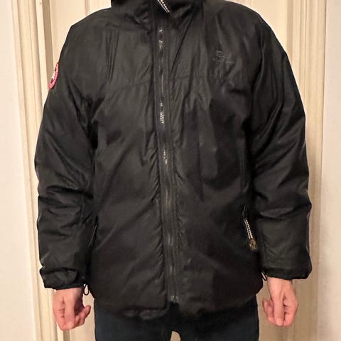 Canada Goose Jakke i størrelse M, fargen grå. Jakken er fylt med dun, som gir isolasjon og varme. Egnet for utendørs bruk.