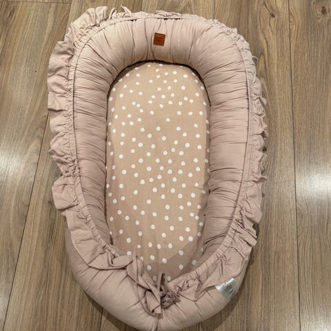 Hjemmestrikket mor signes babyteppe. Elastisk, lett og lunt.