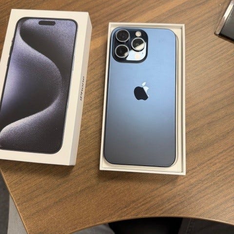Selger iPhone 15 Pro Max 256 GB i grå titanium. Telefonen er i meget pen stand og fungerer helt perfekt.