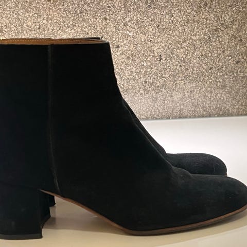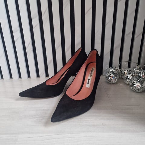 Acne Studios Hæler i størrelse 39. Skoene har en glitrende overflate og en lav blokkhæl. Egnet for formelle eller festlige anledninger.