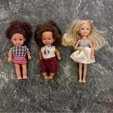 Ulike brukte Barbie-dukker til salgs. Noen er vintage, fra 1990-tallet og samleobjekter.