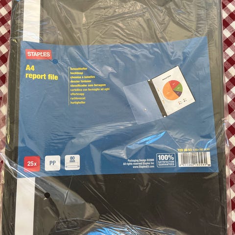 Brevordner mappe i A4-størrelse laget av plast. Produktet inkluderer mapper i blå og rød farge. Egnet for oppbevaring og organisering av dokumenter.