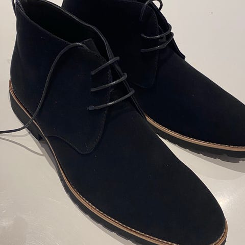 Skoene er helt nye, kun prøvd én gang innendørs, men viste seg å være for store for meg. Jeg bruker vanligvis størrelse 44–45, og disse vil trolig passe best for noen som bruker 45–45,5. Skoene er av størrelse US 11,5.