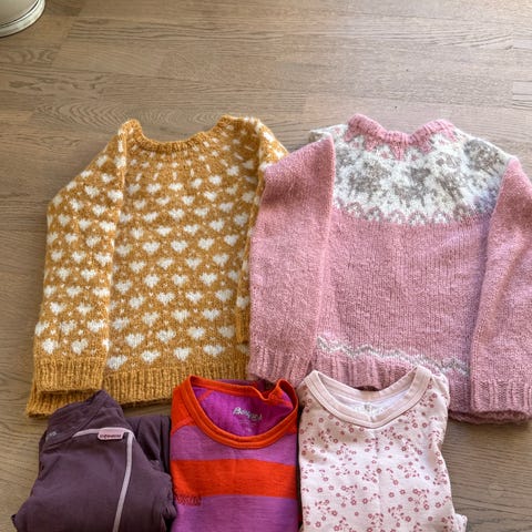 Pent brukte ulltrøyer i str 122/128 7-8 år.