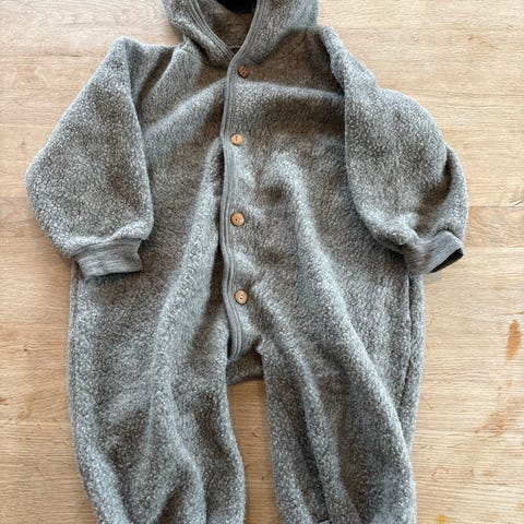 Lillelam selebukse i str 74, pent brukt. Liten flekk på venstre kne som eg ikkje he prøvd å få ut. D e nesten ikkje synlig i virkeligheten (bildet juger litt her). Pent brukt ellers. Ingen tegn te slitasje.