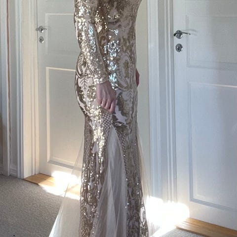 Jeg er 165 cm høy, men har på meg liten hæl på bildet. Ca. 3 cm.