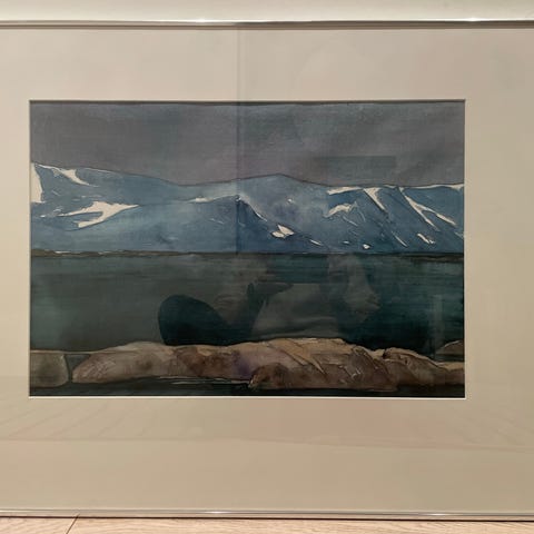 Kunsttrykk med håndcollorering av Nina Mo. Bilde viser Langøytangen fyr og er i størrelse 30x40. Med paspatur er størrelsen på bilde 40x50. Leveres med ramme.