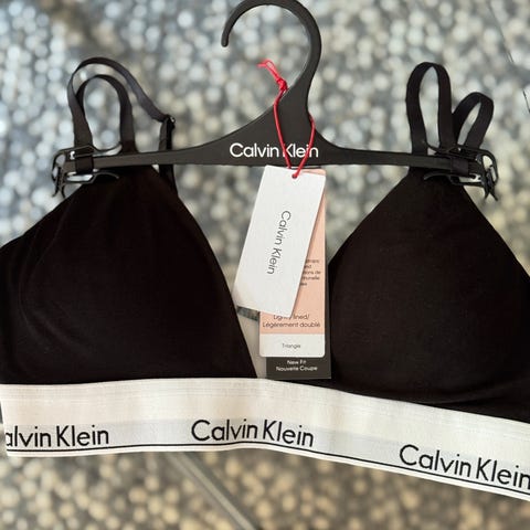 Calvin Klein Triangle er en trekantet BH i grå farge laget av bomull. Den er i størrelse S.