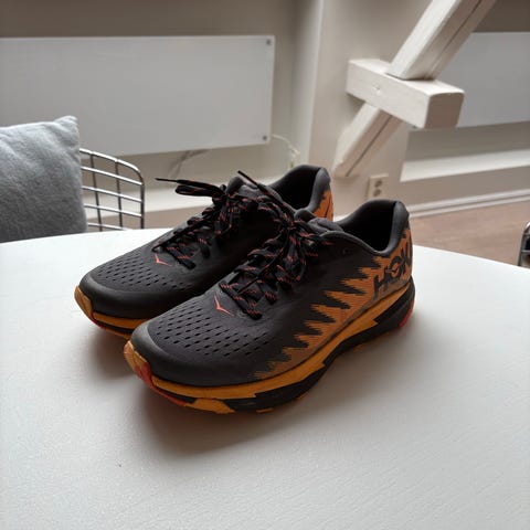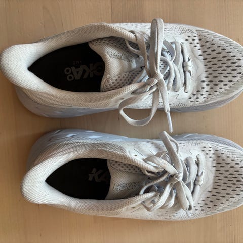 Selges Hoka Clifton 7 joggesko 42 ,5 svart Hælen på skoene er litt slitt, (men det kan lett fikses med selvklebende reparasjonslapper for sko ) Bud mottas