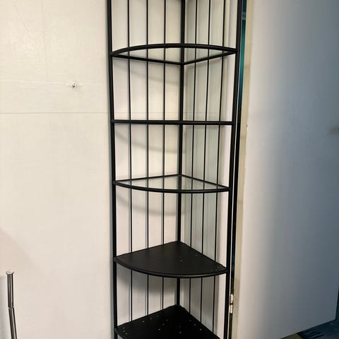 Det enkle designet og glasshyllene gjør at tingene du er glad i synes godt. Topp- og bunnplatene er brunsvarte på den ene siden og svarte på den andre, slik at du kan velge uttrykket som passer deg.
