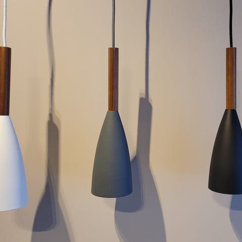 70-talls taklampe i kobber og glassdetaljer.