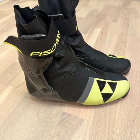Kjøpt for to år siden. Fint brukt på skitrening én sesong, og så ble det bare to treningsøkter med skøyting i fjor siden vinteren aldri kom helt til vestlandet da. Så skiskoene er i svært god stand og har masse bruk igjen. Litt skraper på tuppen, se bilde, men dette har ingen praktisk betydning.