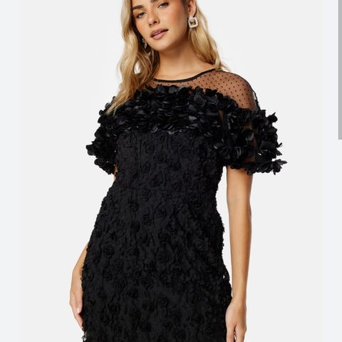 Ida Sjöstedt, estkjole i størrelse M, farge svart,. Kjolen har dekorative detaljer med blomster.