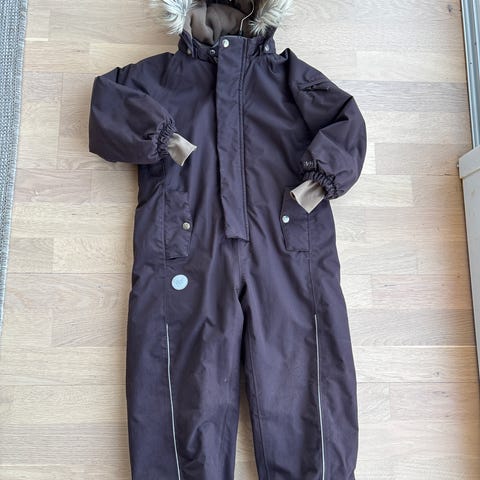 Wheat vinterdress, i fargen cinnamon, pent brukt med vanlige slitasjeskader. Vasket og tørketromlet og klar til neste barn. Ingen hull eller rifter. Avtagbar hette. Veldig varm og god plass til ullundertøy og fleece for ekstra kalde dager.