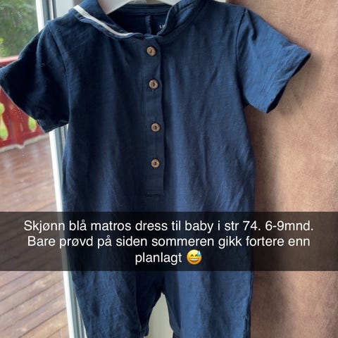 Veldig pent brukt matrosdress i str 74 selges.