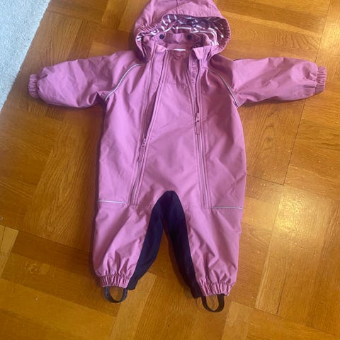 Polarn O. Pyret barnedress i størrelse 80, farge rosa. Laget av polyester. Passer for jente. Dressen har hette og elastiske mansjetter ved ben og armer for bedre passform.