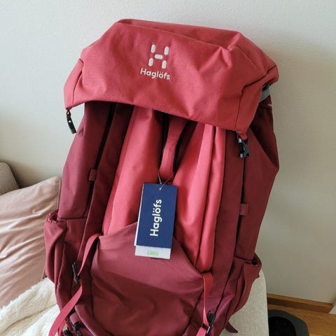 Modellen er Ängd 60 W fra Haglöfs, i en fin mørk blå farge. Sekken har flere smårom og smarte oppbevaringsmuligheter, og justeringsmuligheter.