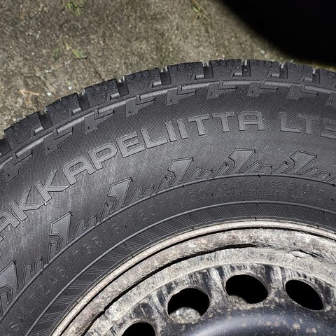 Selger et sett vinterhjul som har sittet på en 2011 Mercedes Sprinter med Nokian Hakkapeliitta piggdekk.