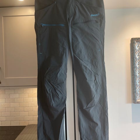Fikk en rift nede på beinet. Reparert med gul vanntett lapp.