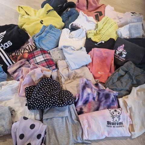 Strikkejakke og kjole str. 122
