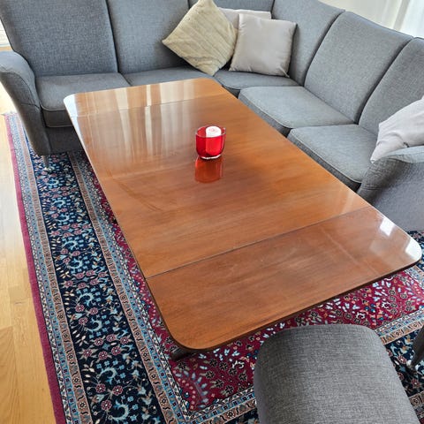 Har en del synlige bruksmerker - jeg skulle male den over på nytt, men fikk plutselig et nytt bord istedenfor så jeg håper denne kan finne et godt nytt hjem der den blir brukt i flere år til.