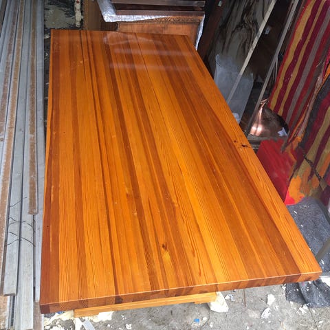 Jeg har selv kjøpt den brukt for noen år siden, bordet var opprinnelig grå i fargen. Gammelt fra Ikea, stødig og massiv furu.