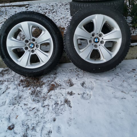 4 stk komplette pigghjul av beste Hakka-kvalitet til BMW x3 e83. Dekk er produsert 01/24 og ble kjøpt inn og kjørt cirka 200 mil sist vinter på en 2007-mod. 9 mm mønsterdybde. Ikke kjørt denne vinteren da jeg har et ekstra sett. Dekkene kostet meg ca kr 13000 i innkjøp med rabatt. Det følger med litt godt brukte felger i 7x17 med innpress ET38 som gjør at de bygger litt ekstra ut på x3.